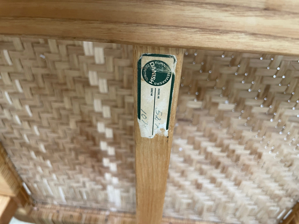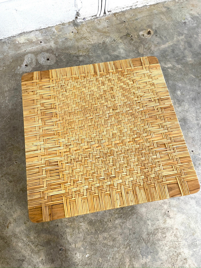 Rare Borge Mogensen Wicker or Cane CoffeeTable. Produced by Fredericia. Solid oak legs. Original cane. Labeled. 27x27x14 tall