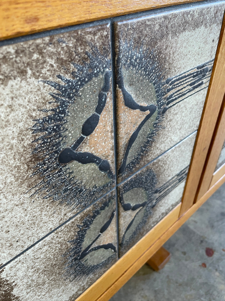 Rare Poul H. Poulsen for Gangsø Møbler oak sideboard credenza circa 1970s, with large ceramic tile fronted doors. 84.5w 18d 30h
