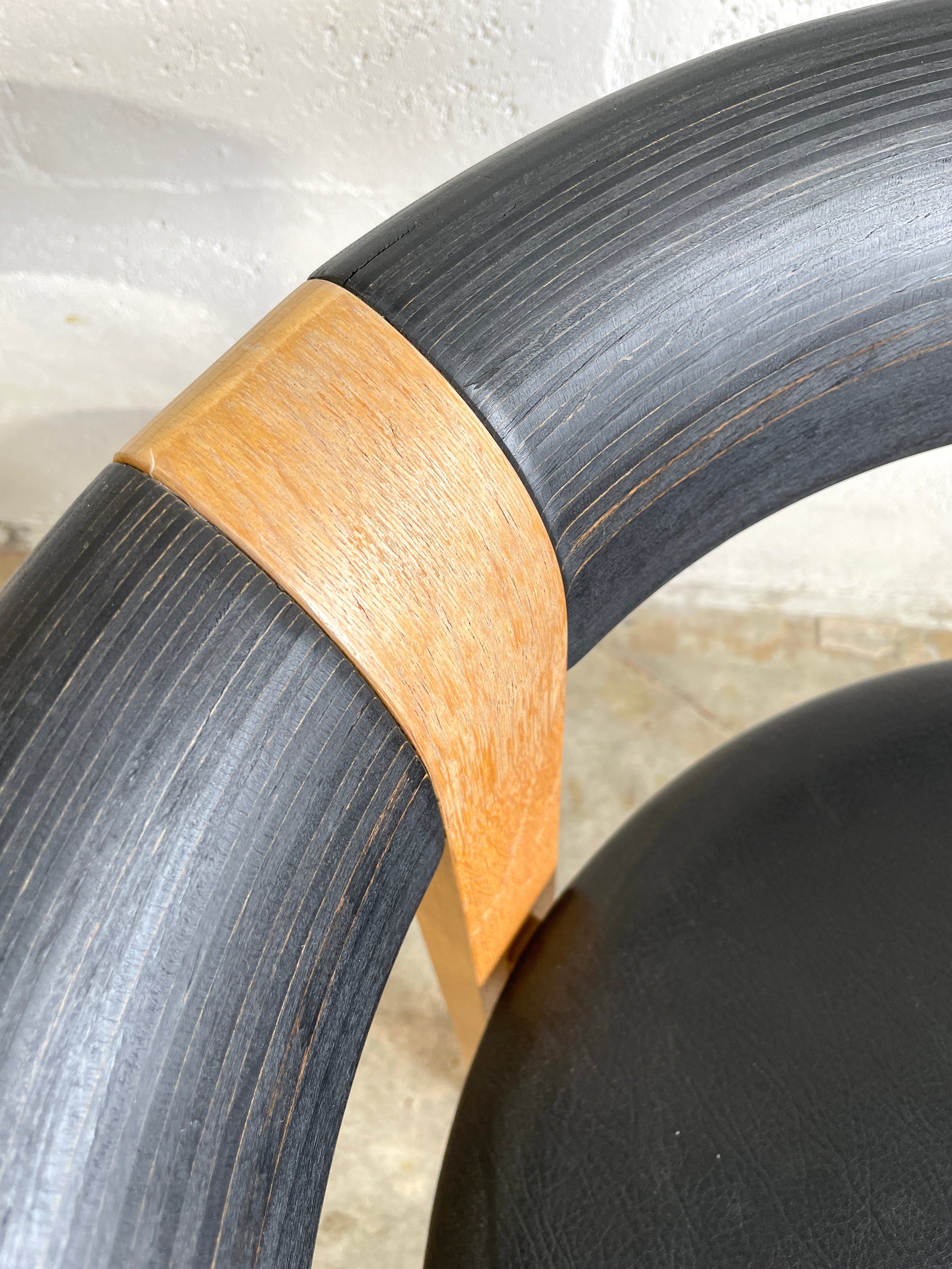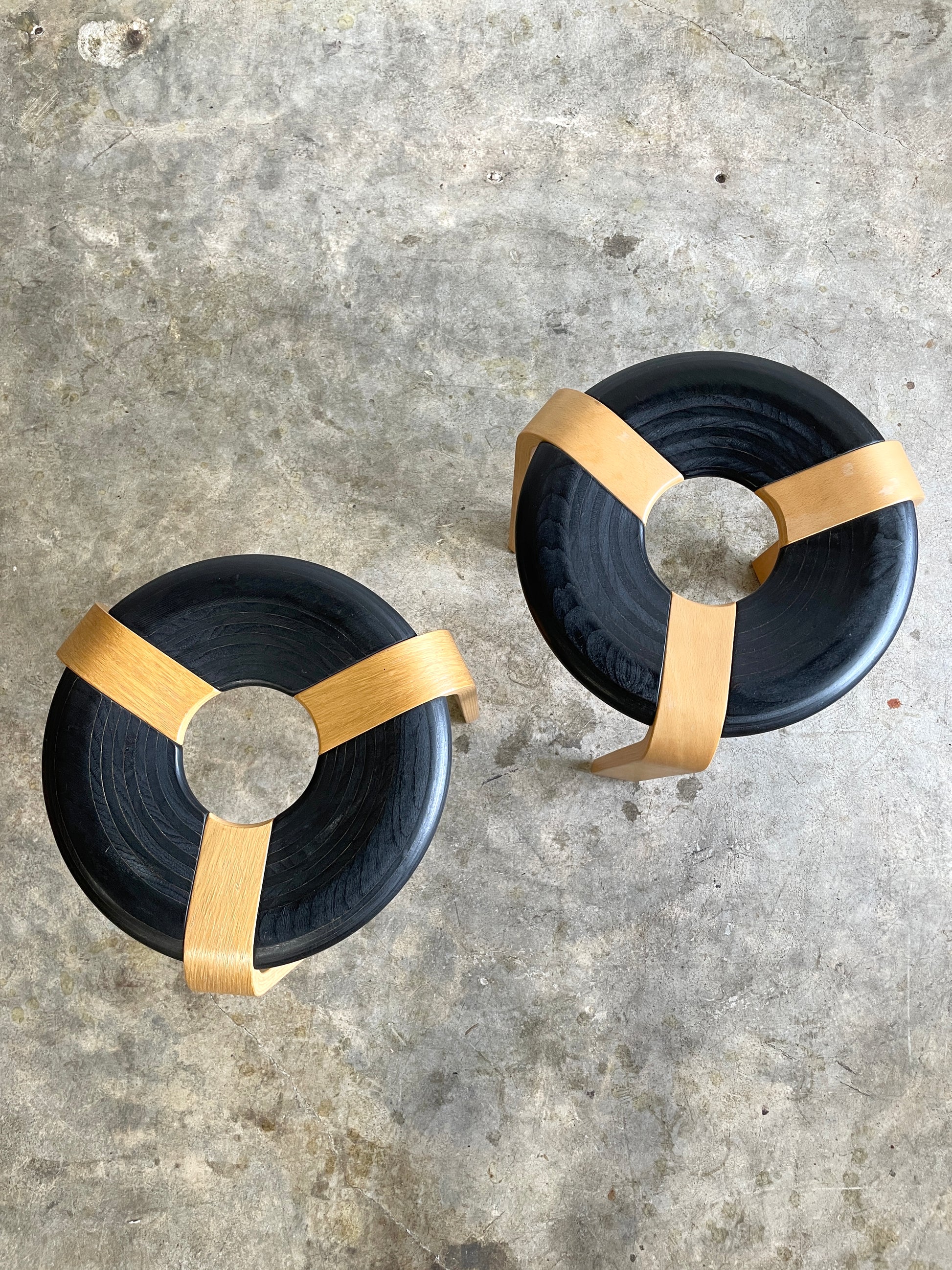 Thygesen & Sorensen for Magus Olesen 4551 chairs and 4545 "Doughnut" Stools. 1970s. Oak bentwood. labeled. 2 chairs and 2 stools available.