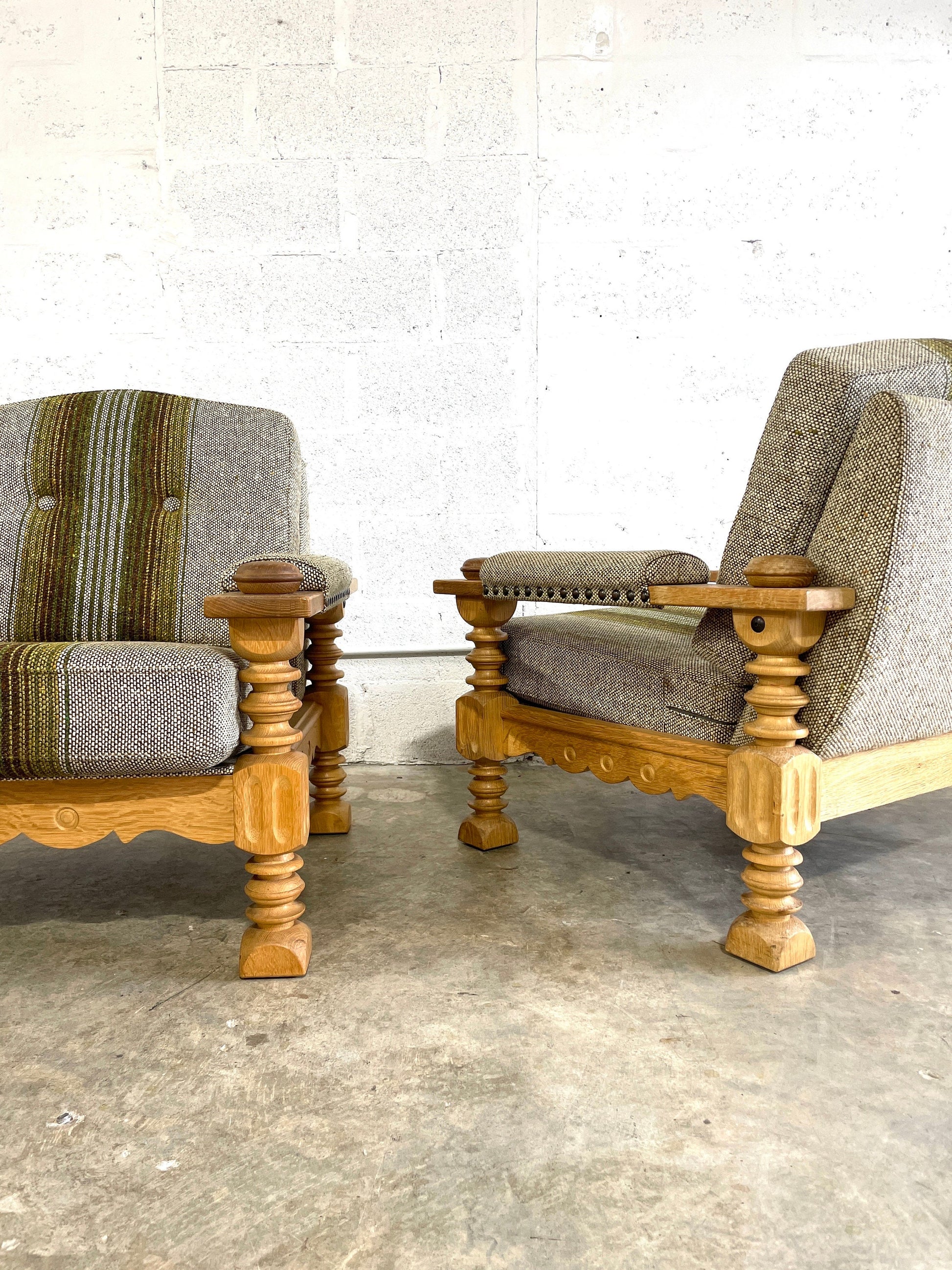 Pair of Danish Modern Brutalist Lounge Rustic Primitive Chairs in Oak Henning Kjærnulf