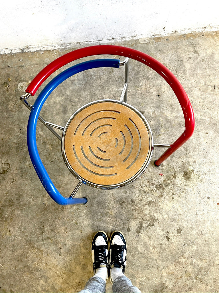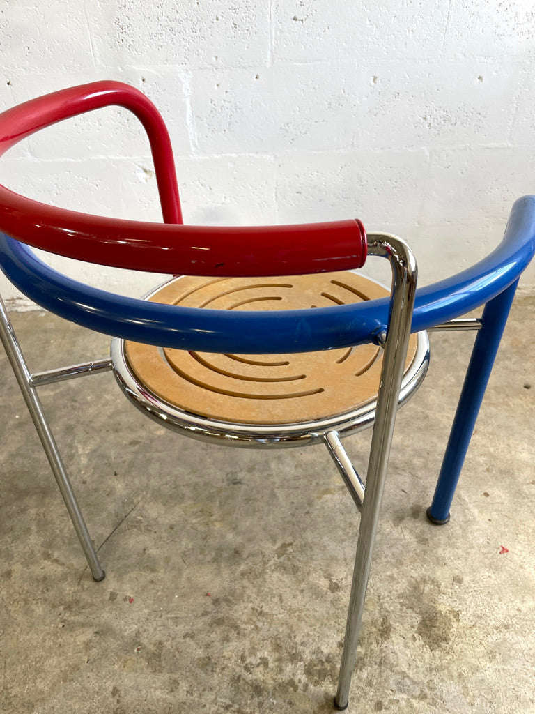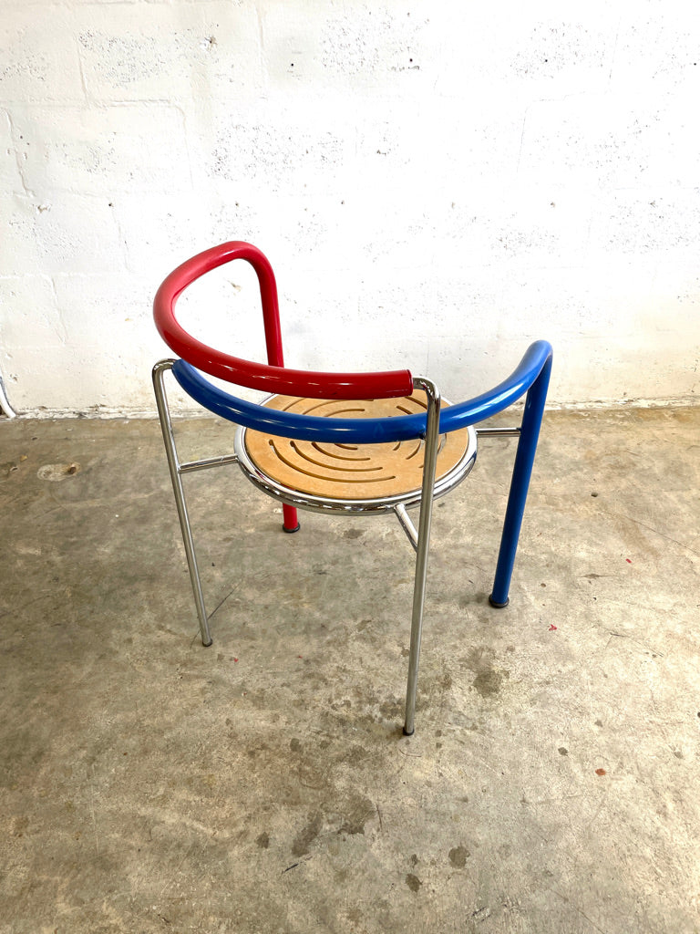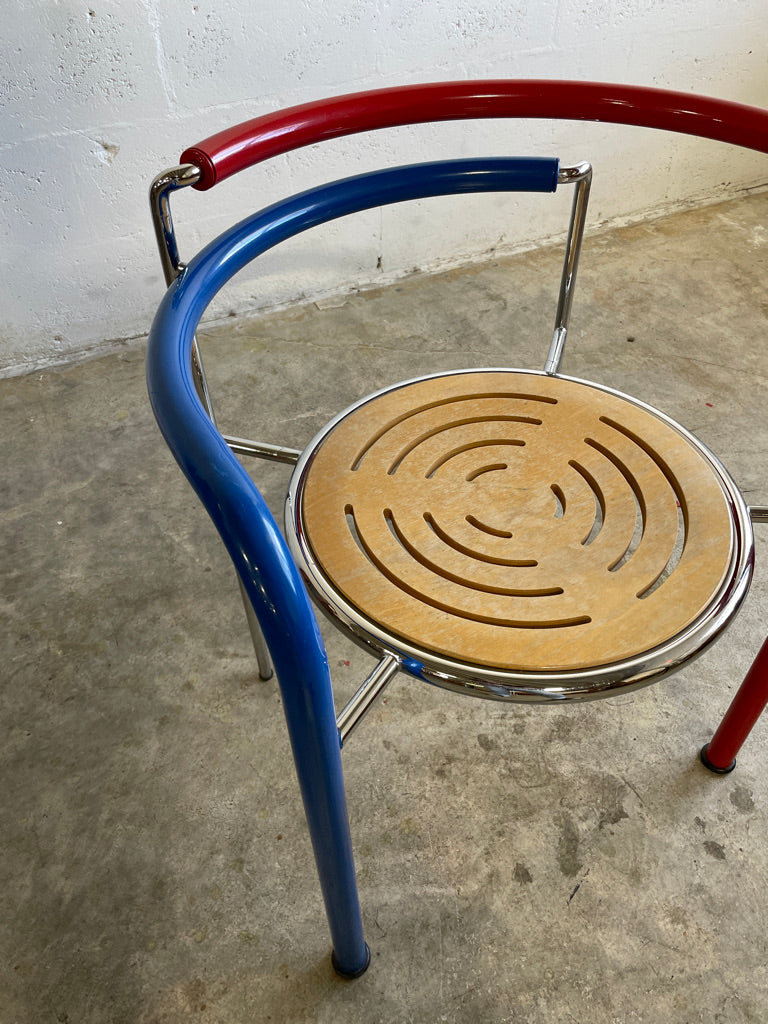 80s Dining Chairs "Dark Horse" designed by Rud Thygesen & Jonny Sørensen for Botium. Made in Denmark. Rare. Steel + Plywood. 2 available. Original colors.