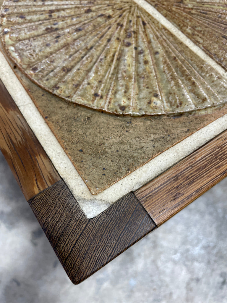 Stunning Danish Modern Tile coffee table by Danish born artist Tue Poulsen. Stained oak frame and legs. Produced by Haslev Mobelsnedkeri. 52.75w 31.5d 18h